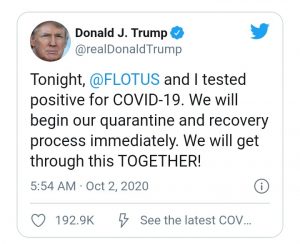 “Tonight, [the first lady] and I tested positive for COVID-19. We will begin our quarantine and recovery process immediately. We will get through this TOGETHER!” the president tweeted in the early hours of Friday morning.