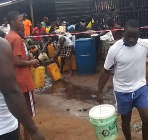 Eyewitness account said despite the presence of security operatives in the area, scooping of petrol by the residents continued freely.
