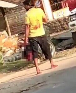 Footage of the man brandishing his wife’s head was published on social media, where authorities say it went viral.