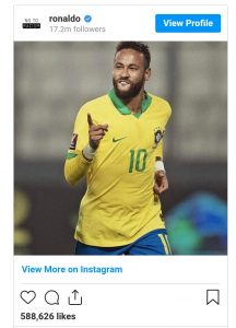 After the match he paid tribute to Ronaldo, who scored 62 times for the Selecao, writing “All my respect for you PHENOMENON” on Instagram.