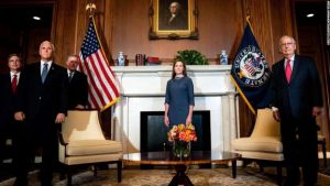 Barrett had already been confirmed to the Seventh Circuit Court of Appeals, in a 55-43 vote in October 2017, when three Democrats voted to support her. She is Trump’s third justice on the Supreme Court, after Neil Gorsuch – appointed to replace the late Antonin Scalia in 2017 – and Brett Kavanaugh, who filled the seat left open by the retirement of Justice Anthony Kennedy in October 2018.