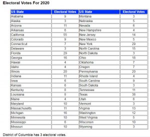 Each state gets at least 3 electors. California, the most populous state, has 53 congressmen and two senators, so they get 55 electoral votes.