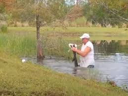 A Florida man made headlines with a display of love for pets when he rushed into the water to free his dog, Gunner from the jaws of a small alligator that had dragged it into the water.