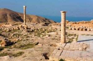 The Machaerus stronghold was erected 32 kilometers southwest of Madaba over 2,000 years ago on a cliff with a view of the Dead Sea – and on clear days, of the temple in Jerusalem. Rabbinic writings report that the smoke of the sacrificial offerings could be seen rising from the altars of the temple in Jerusalem all the way in Machaerus (Mishnah 3, Tamid 3.8).