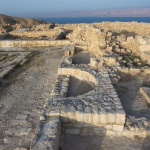 And it was more than that: When upgrading the stronghold into a palace, Herod built a Roman-style bath, a triclinium for feasting, and a formal courtyard with a peristyle, aka a small royal garden, surrounded by porticos on four sides – one of which contained the apsidal structure marking the place of King Herod’s throne. He would pass this palace onto his son, the tetrarch Herod Antipas.