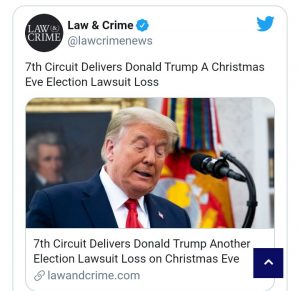 President Donald Trump’s 2020 campaign has suffered yet another humiliating post-election defeat — this time, on Christmas Eve, which found a three-judge panel for the 7th Circuit Court of Appeals throwing out a lawsuit challenging the election results in Wisconsin.
