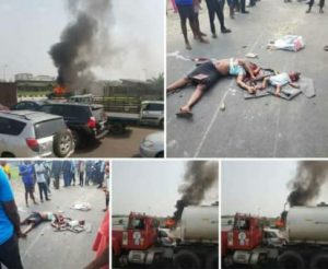 “The woman appeared to be feeding her daughter when the security van hit the Keke before a tipper carrying sand and also giving way for the personnel chasing the suspected yahoo boys further crushed the victims.