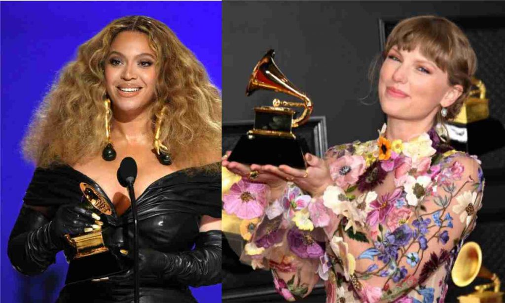 Swift became the first female performer to win album of the year three times and Beyoncé, with her 28th win, became the most decorated woman in Grammy history. She also ties Quincy Jones for second place among all Grammy winners.