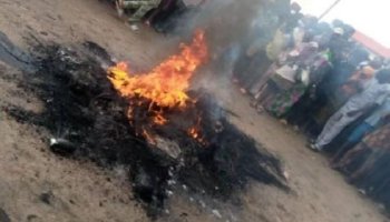 The villagers immediately pounced on him and after beating him to a pulp, they set his body on fire.