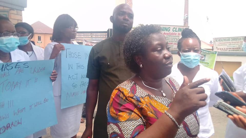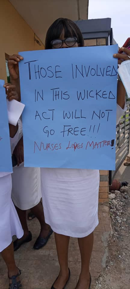 Speaking to journalists during the protest on Tuesday, the state Chairman, National Association of Nigeria Nurses and Midwives, Comrade Ugochi Akoma described the murder as barbaric.