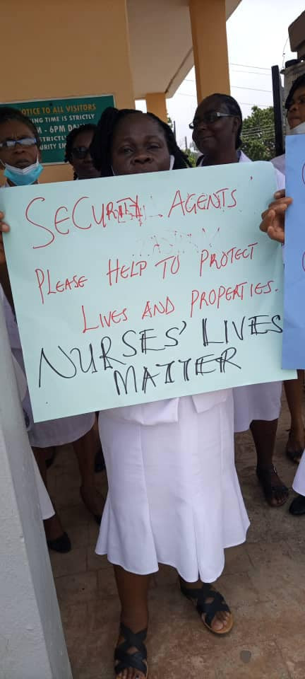 Carrying placards with inscriptions like, “those involved in this wicked act will not go free, Our Lives are under threat, today it is Queeneth, Who knows whom it may be tomorrow” the nurses called on the government and security agents to fish out the perpetrators of the crime for justice to prevail.