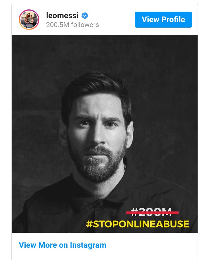 Football legend Lionel Messi has refused to celebrate passing 200 million followers on Instagram. Instead, he preferred to draw attention to the battle against online abuse and bullying while addressing the impressive landmark.