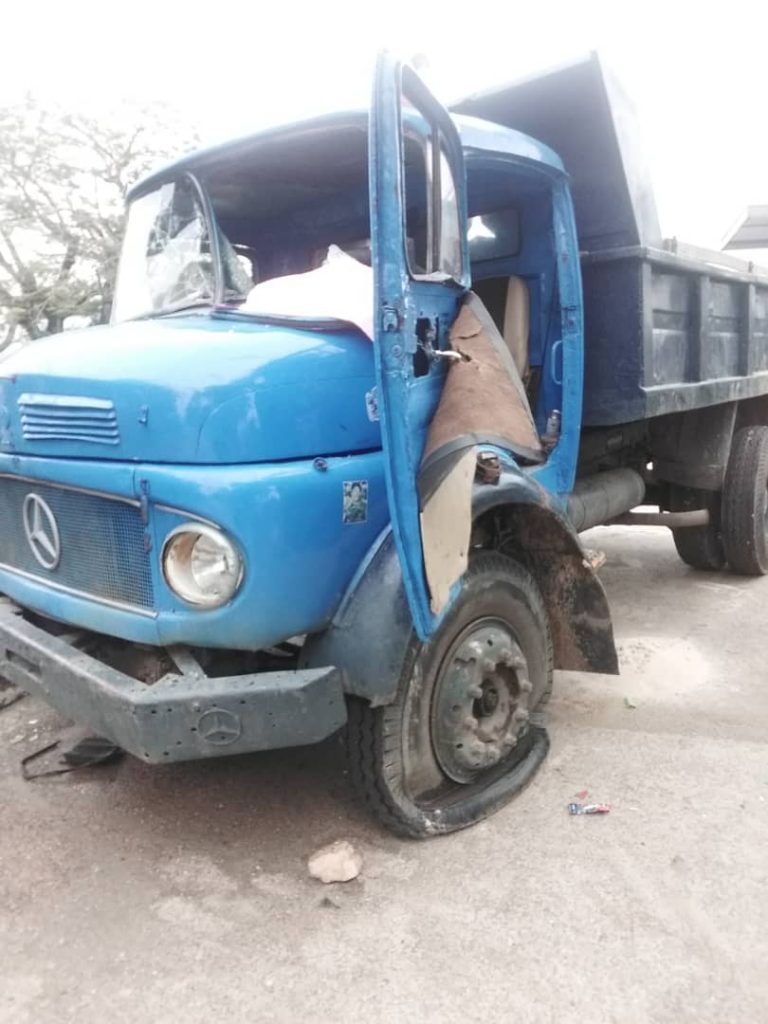 The tipper has been driven into the school compound, while security agents have locked the school gate.