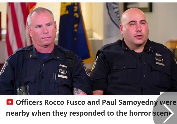 Police officers Rocco Fusco and Paul Samoyedny were in a bagel shop nearby when were called to the horror scene in Yonkers, New York.