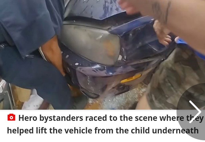 The child’s mother, 36, was also trapped in the wreckage of the car – and with the help of bystanders, the officers were able to lift the mangled car from the infant and free the mum.