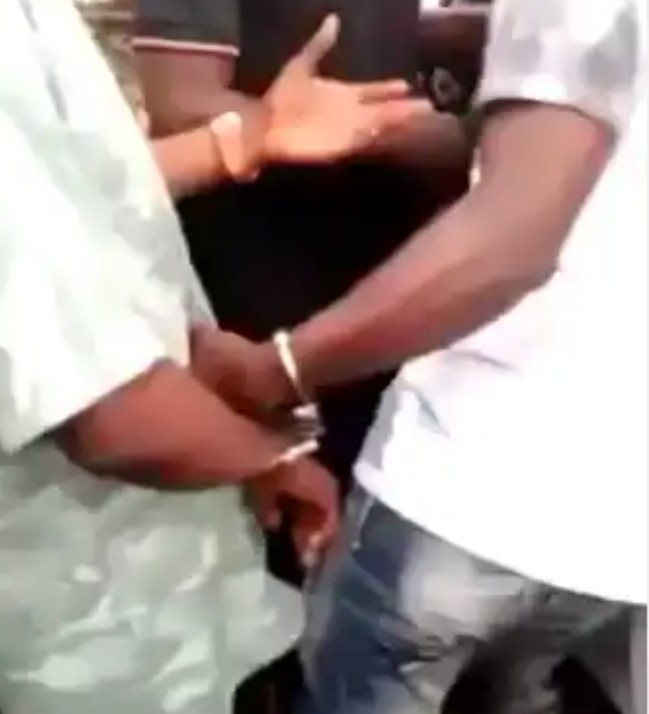 The men who claimed to be police officers in the video, were seen in handcuff and some items they use in their illicit business were discovered after a search was conducted in their car.