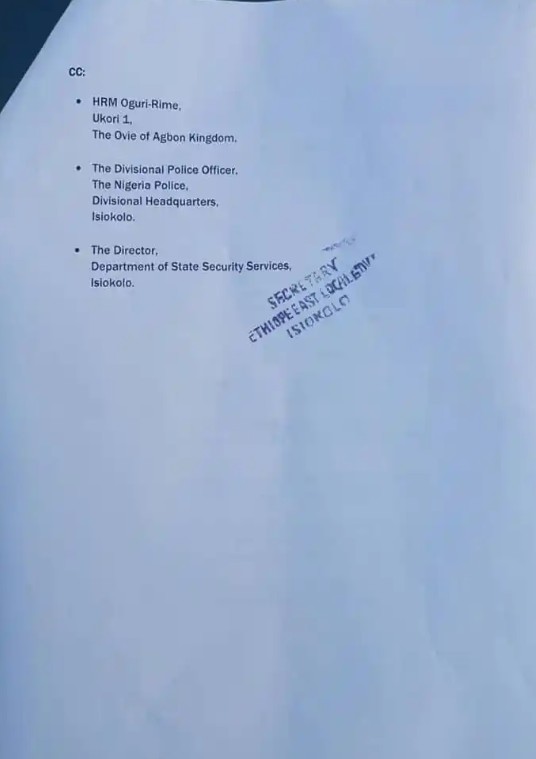 “In the light of above, all Police formation situated in proximity to Orhoakpor Community are hereby ordered to enforce the curfew in accordance.