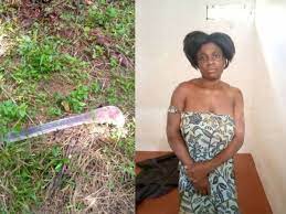 The suspect, Rachael Tetteh was believed to have trailed the deceased, Daniel Lartey, 35, who was on his way to the farm and allegedly pushed him down before cutting off his head with a machete.