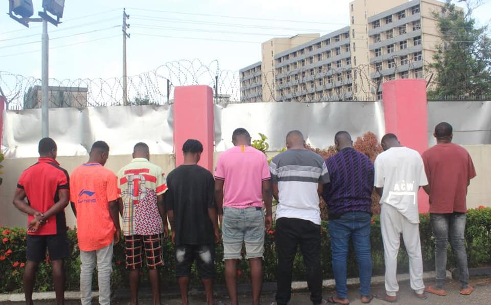 The arrested suspects are: Musa Shaka, Musa Dauda, Oghenekuwe Moses, Oghenekuwe Hezekiah, Akpan Bobby, Ilaya Godstime, Olemene Azubuike, Edevo Success and Atarhe Ochuko.