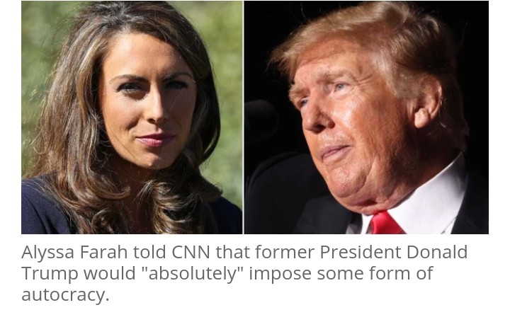 Alyssa Farah, who served as the White House’s director of strategic communications and assistant to the president (Donald Trump) in 2020, told journalist CNN’s Jake Tapper that Trump would “absolutely” impose some form of autocracy if re-elected in 2024.
