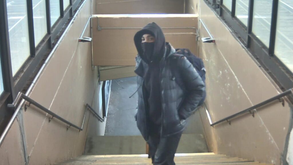 Metra Police initially asked the public for help identifying the suspect spotted in two surveillance photos at the Van Buren Street Station in downtown Chicago. As the train pulled into the station around 2:17 p.m., the pictured offender, who was a passenger, “produced a black semi-automatic handgun and announced a robbery,” police said. He then allegedly proceeded to steal the conductor’s cash and fled on foot into the station. One of the photos shows the masked suspect with a weapon on the platform.