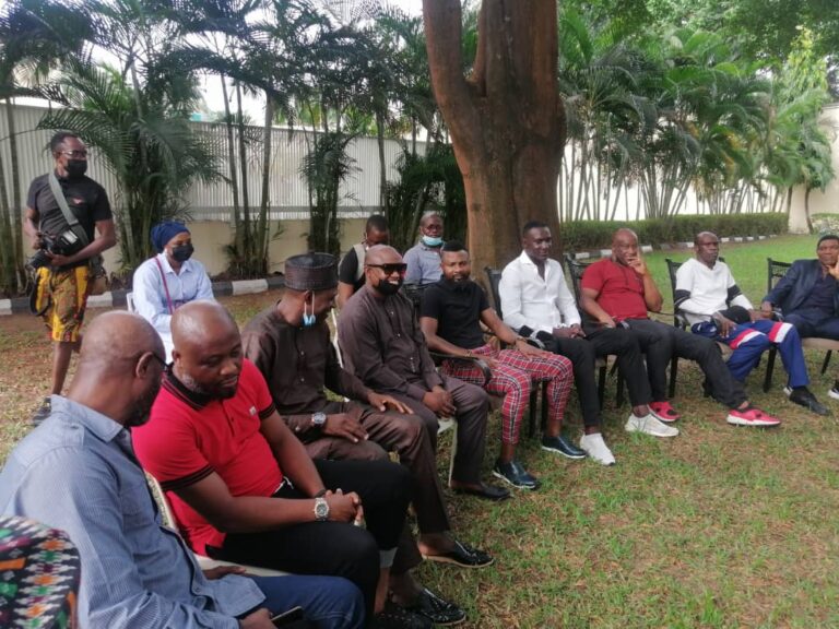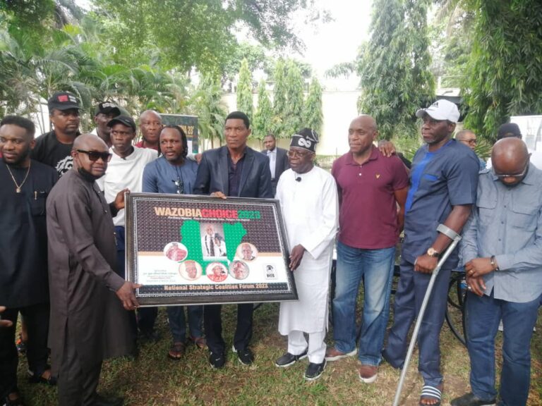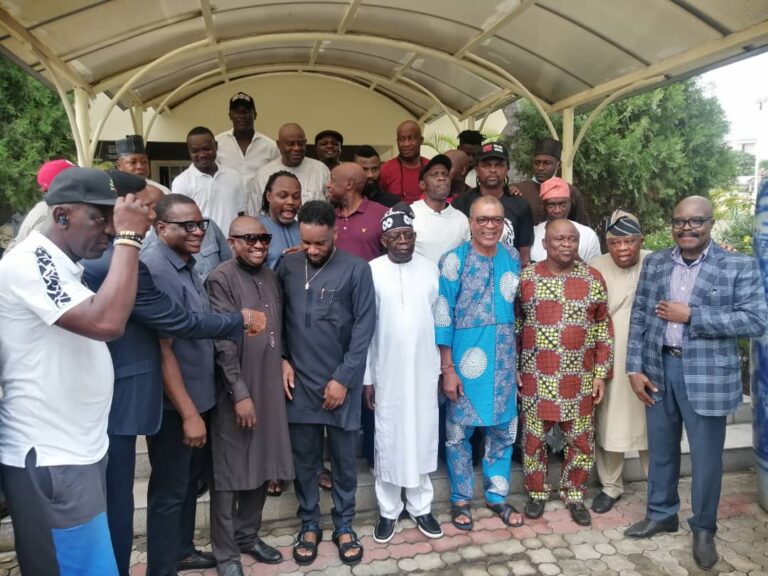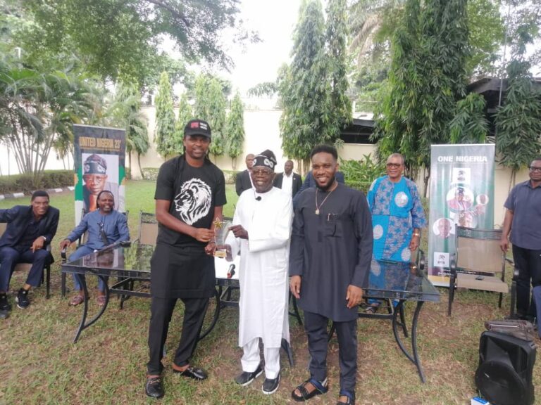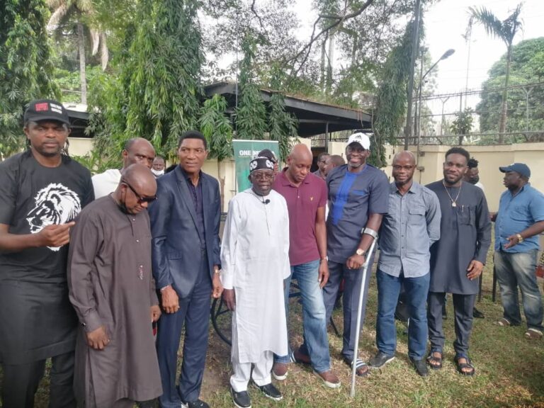 Ex-Super Eagles players and Kanu Heart Foundation visited the National Leader of the ruling All Progressives Congress (APC), Bola Ahmed Tinubu at his Bourdillon residence in Lagos today.