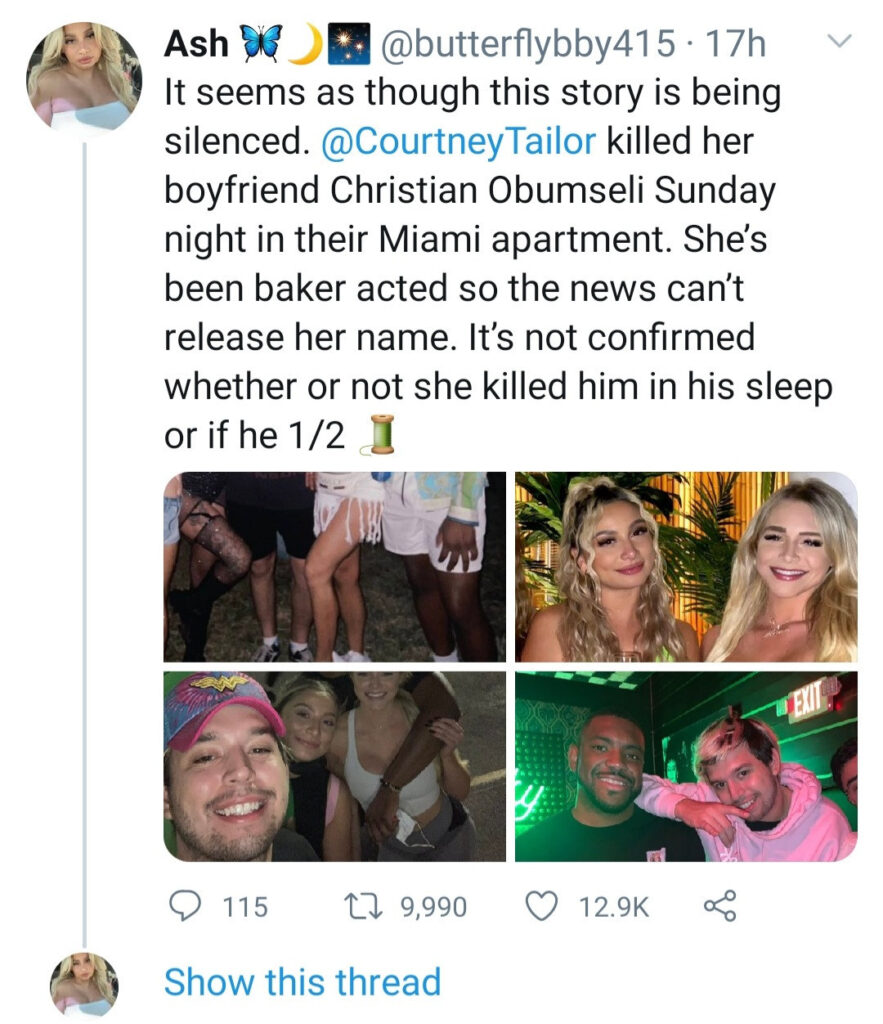 Old tweets shared by Christian Toby Obumseli have emerged after he was stabbed to death by his white girlfriend Courtney Tailor Chenney.