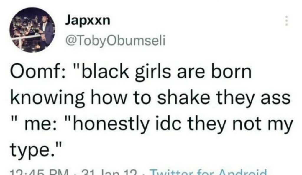 In the old tweets shared by Christian, he called out black women and said that “white tatties” are greater than “black titties”.