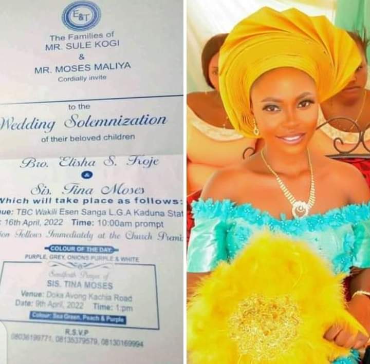 A young woman identified as Tina Moses, has been kidnapped a day to her wedding in Kaduna State.