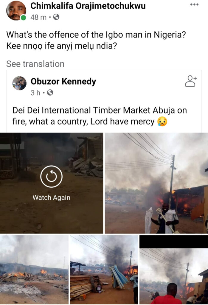 Vice-Chairman, Timber Shed Market Dei-Dei, Ifeanyi Chibata, informed the minister and his team that 45 to 50 shops and 25 vehicles totaling over one billion naira had been set ablaze. Also, the Secretary, Tomato and Onion Sellers Association Dei-Dei, Dahiru Mani disclosed that four persons were killed during the clash in the market.