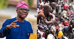 The Lagos State Governor, Babajide Sanwo-Olu, has announced a total ban on the operations of commercial motorcycles, widely known as okada, in some local government areas in the state with effect from June 1, 2022.