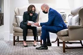 President Joe Biden and Vice President Kamala Harris confer together Monday, March 29, 2021, in the outer Oval hallway of the White House. (Official White House Photo by Adam Schultz)