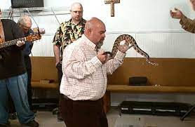 According to the relevant Bible passage from which the practice originated, followers of the Christian faith “will pick up serpents, and if they drink any deadly thing, it will not hurt them; they will lay their hands on the sick, and they will recover”.