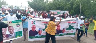 A coalition of 56 support groups across the 13 local councils of Nasarawa State, yesterday, held a one-million-man march in solidarity and support of Labour Party’s presidential candidate, Peter Obi and running mate, Datti Baba-Ahmed.