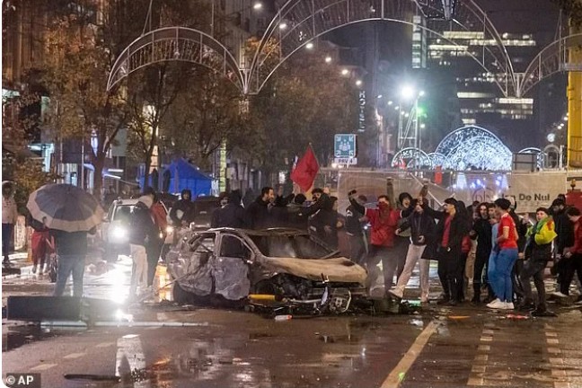 Rioters have started fires and pelted cars with bricks in Brussels following Belgium’s shock 2-0 loss to Morocco at the World Cup.