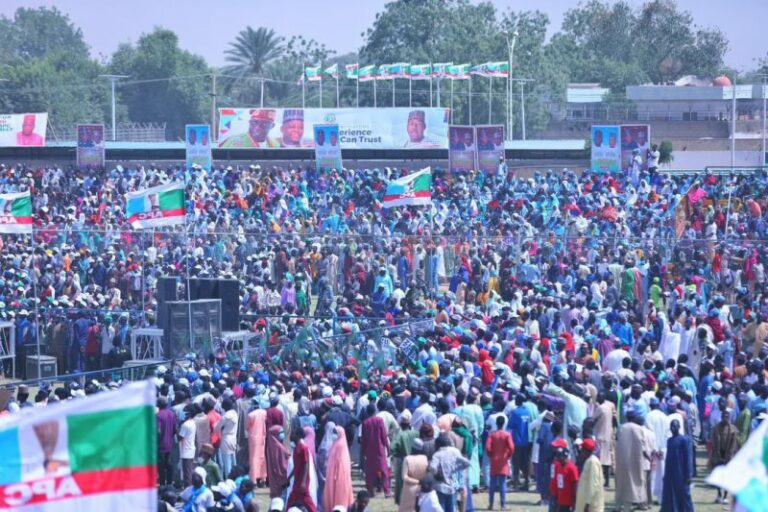 A humongous crowd, such that has been a rare occurrence in the 2023 elections, welcomed the All Progressives Congress’ (APC) presidential candidate, Asiwaju Bola Tinubu to Maiduguri, Borno State on Saturday for a mega rally.