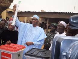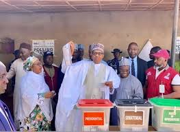 President Muhammadu Buhari and his wife, Aisha cast their votes on Saturday at his hometown of Daura, Katsina State, Northwest Nigeria.