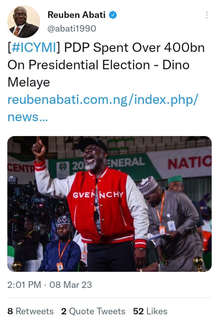 [#ICYMI] PDP Spent Over 400bn On Presidential Election – Dino Melaye