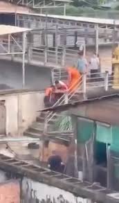 Accompanying pics show the animals paddling through a pool of Nam’s blood, and video depicts officials removing his remains from the area.