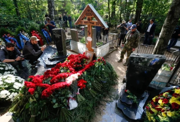 On the day after the burial, one of Prigozhin’s two daughters, Polina, 31, was at the grave at the same time as Irina Krasavina, wife of his body double Leonid Krasavin.