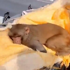 In one frame, the monkey’s dedication to the fallen Singh became apparent as it clung tightly to the yellow mortuary sheet covering Singh’s body.