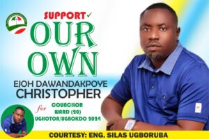 As the 2024 Local Government election draws near in Delta State, it is obvious that Ejoh Dawandakpoye Christopher is a dominant candidate in the PDP councilorship contest in ward 20, Okpe Local Govt Area of Delta State.