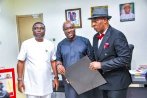The visit was climaxed with a presentation of gifts to Hon. Samuel Oligida and Professor Emmanuel Biri.