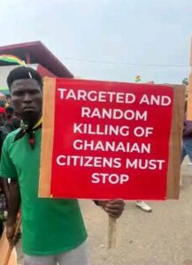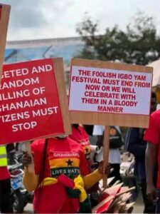The protest was tagged “Nigeria Must Go”. Protesters held placards making accusations against Nigerians and asking that they be deported from Ghana.