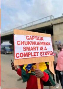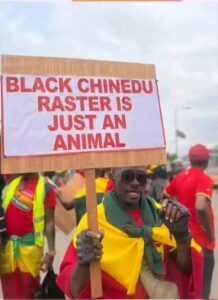 The content on the placards alleged that Nigerian women are engaging in prostitution in their country and Nigerian men are kidnapping and k!lling their people.
