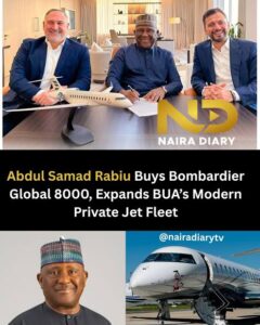 On Thursday, December 4, 2025, Rabiu signed the purchase agreement with Bombardier executives at BUA’s office in Dubai, according to company insiders. The new aircraft will join the group’s existing Challenger 350 and Global 6500, effectively giving BUA one of the most modern corporate jet line-ups owned by a Nigerian company.